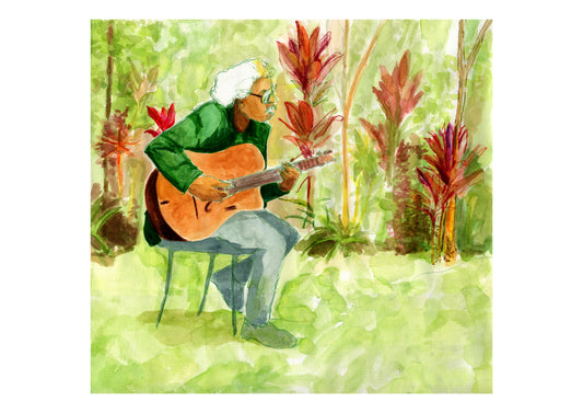 Man plays guitar whilst everybody talks
